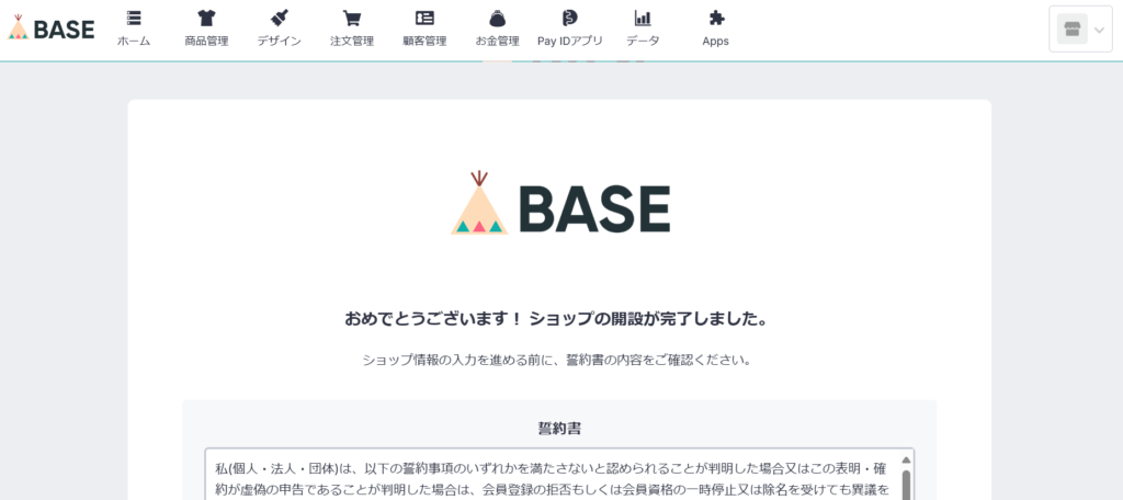 なんと「おめでとうございます!ショップの開設が完了しました」と出ました。