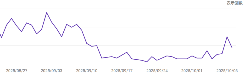 10月に入ってからは表示回数やクリックが少しずつですが増えてきてホッとしています。