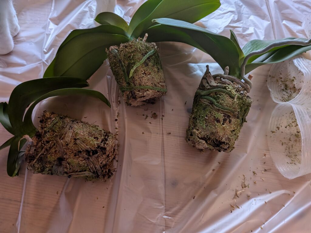 1.ビニールポットから出し、水苔を取り除く