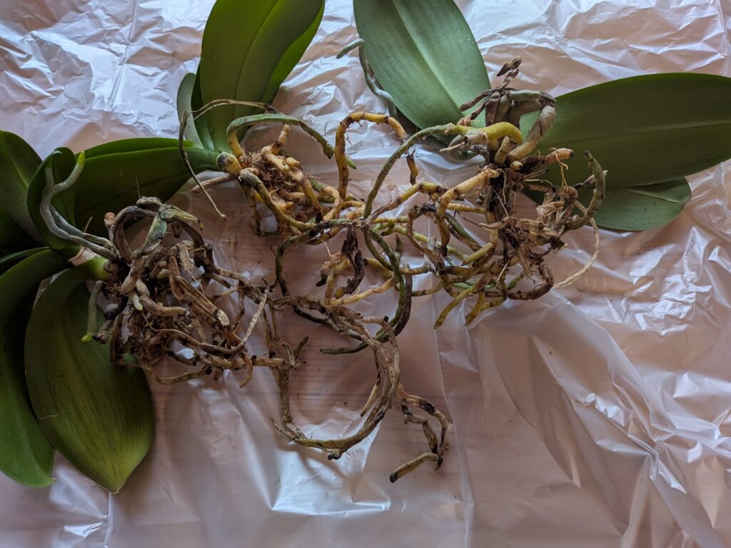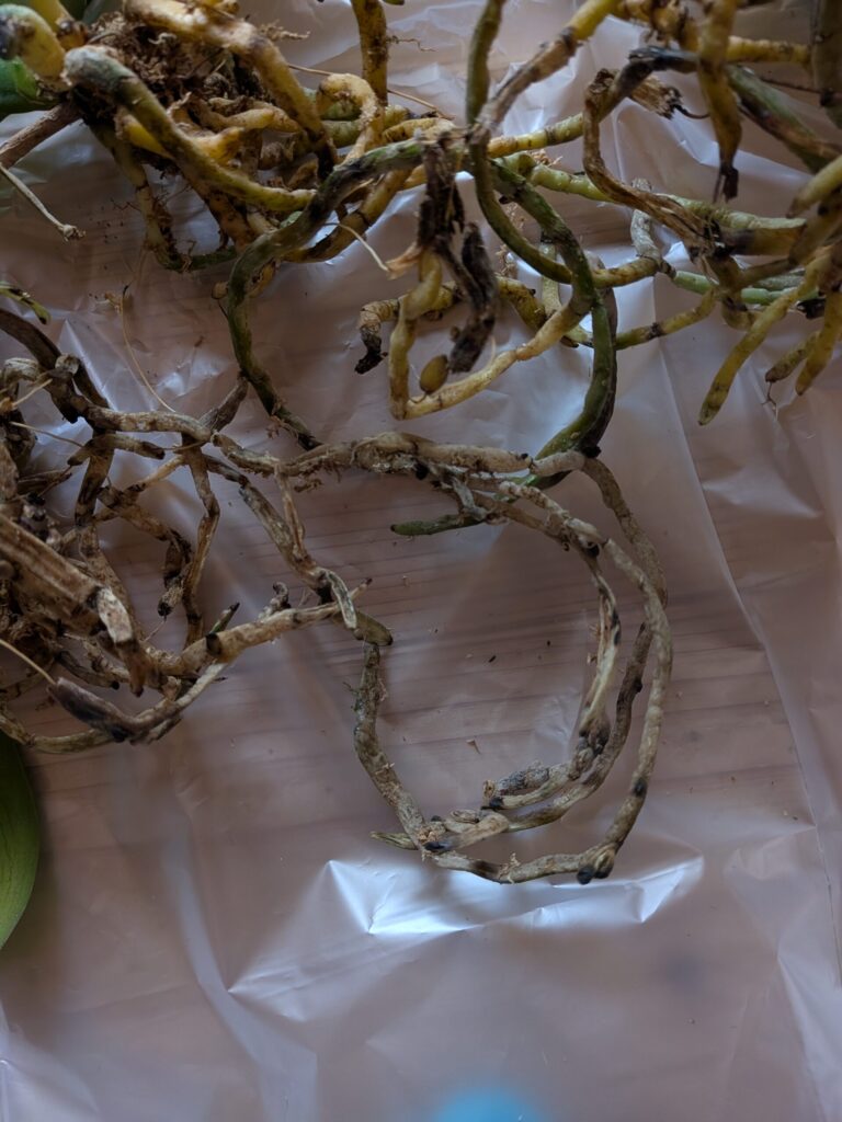 ・真っ黒な根、スカスカな状態の根を切る
