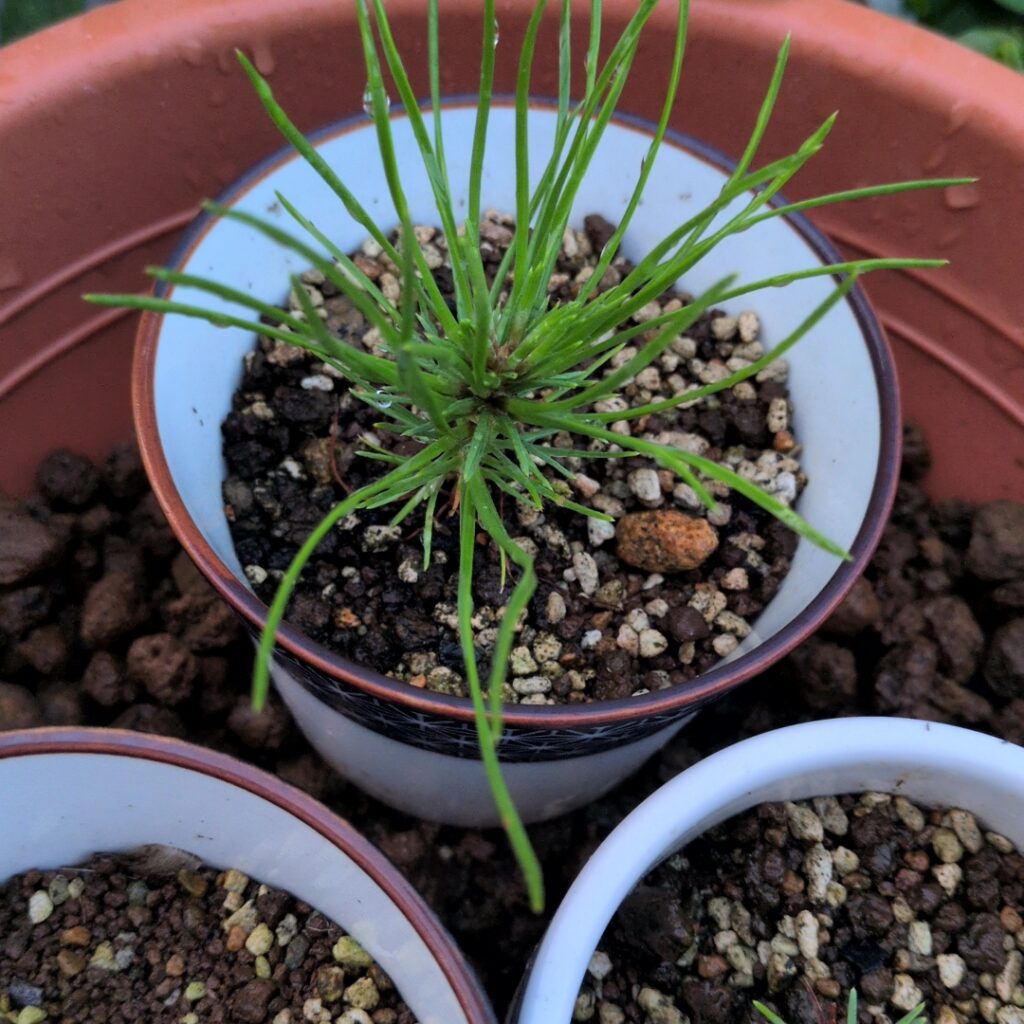 黒松の盆栽キットを購入し、初心者ながら種から黒松を育成をしています。