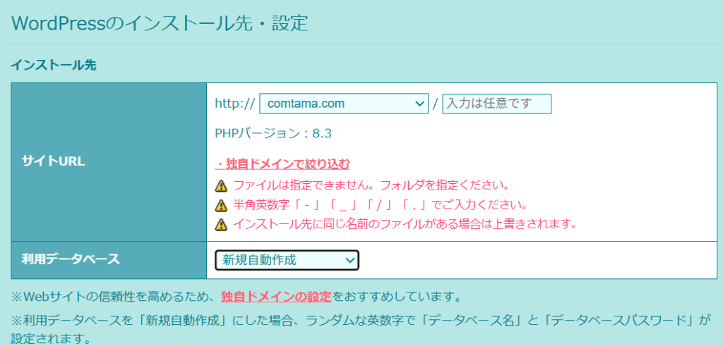 空欄の場合、2つ目、3つ目のサイトを作る際に不便になる場合があります。