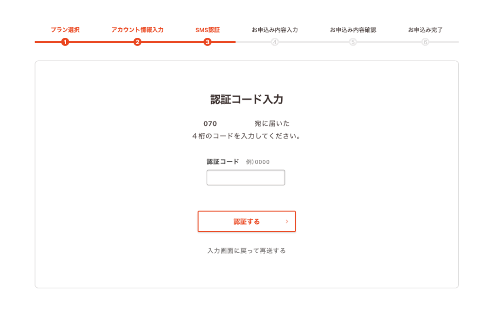 認証コードが送られてきますので、申し込みフォームに入力しましょう。