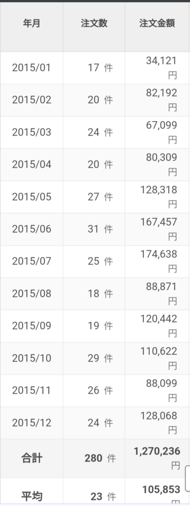 こちらの画像はショップ3年目の売上の記録です。