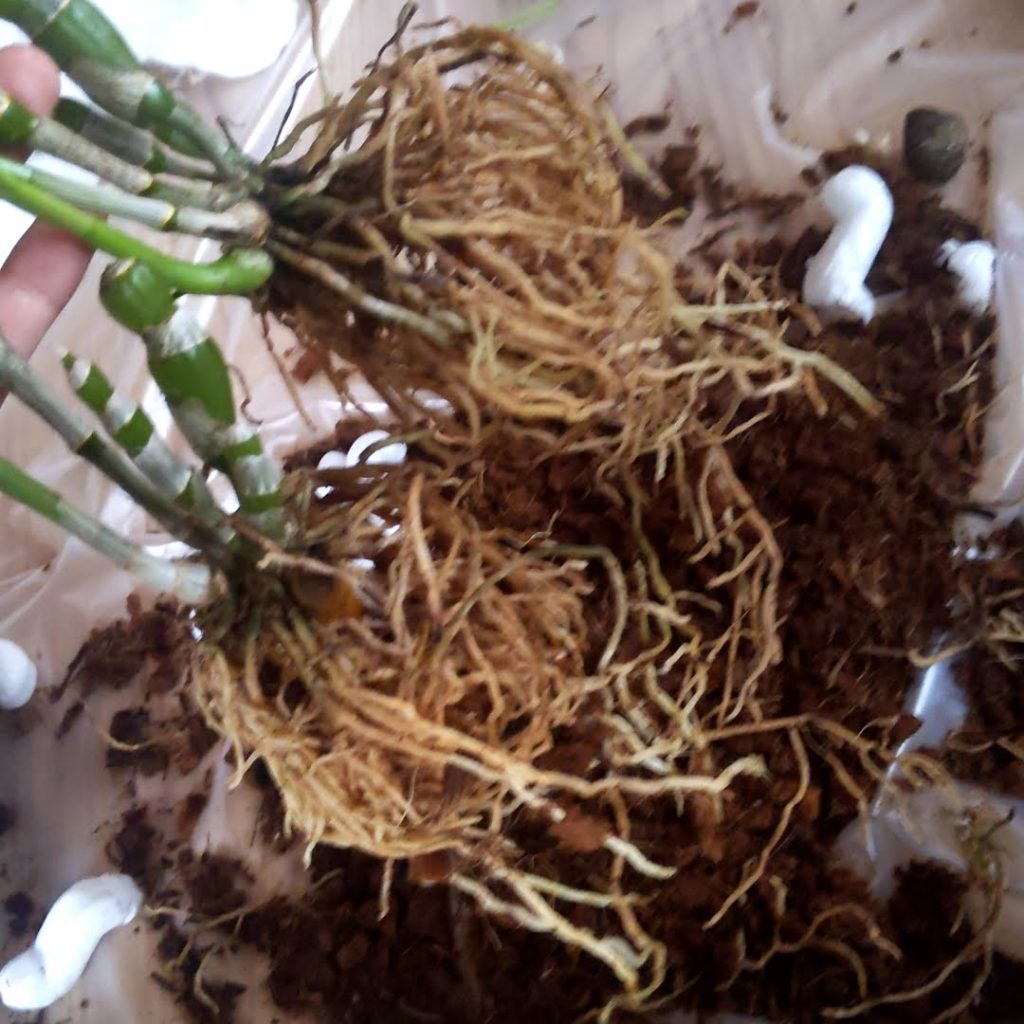 立派な根ですが、よく見ると茶色く根腐れした根や、スカスカな状態な根もあります。