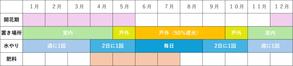 お世話の年間表はこんな感じ!