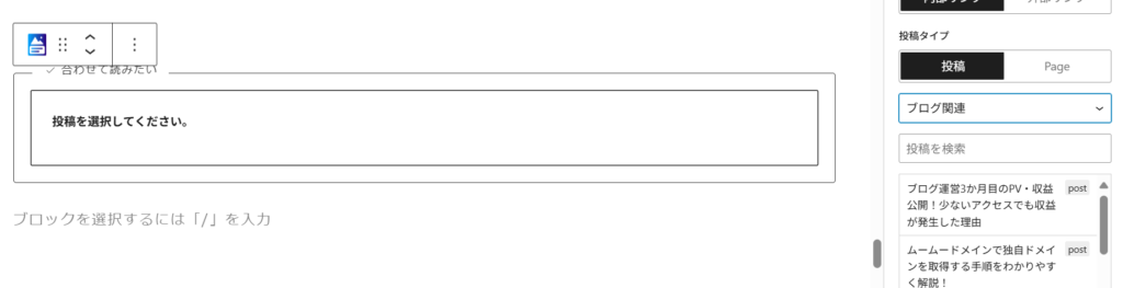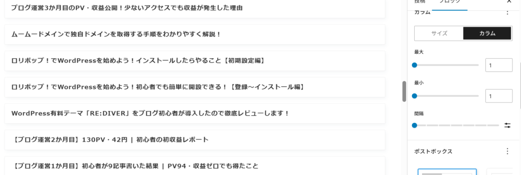 投稿一覧はその名の通り、投稿記事を一覧化することができるブロックです。