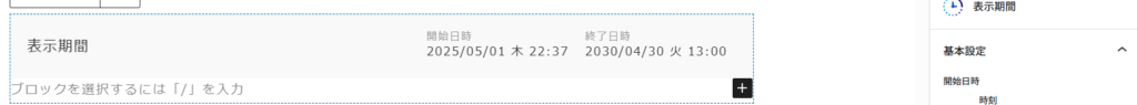 特定のブロックを指定した期間にだけ表示することが可能になるブロックです。