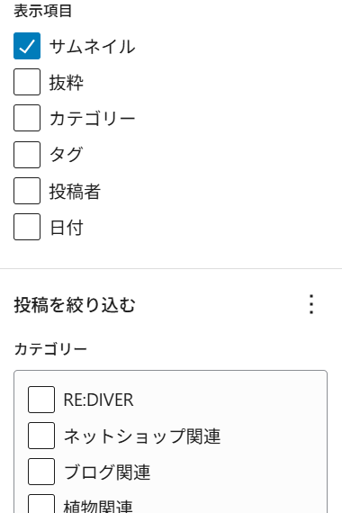 こちらもインライン記事と同じく日付とカテゴリの表示の有無を選択可能です。