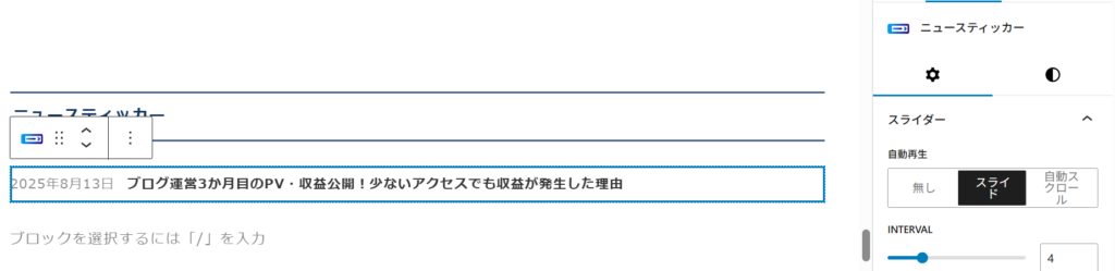 自動再生をスライドにしておくと自動で次の記事のタイトルが表示されます。