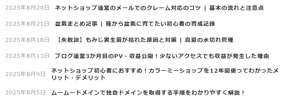 更新の一覧記事として、同じ日に何度も更新することもあるトレンドブログを運営されている方などにぴったりかもしれません。