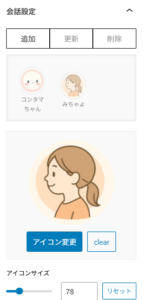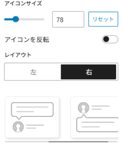 アイコンの大きさ、アイコンの反転、吹き出しの向きなど変更可能です。